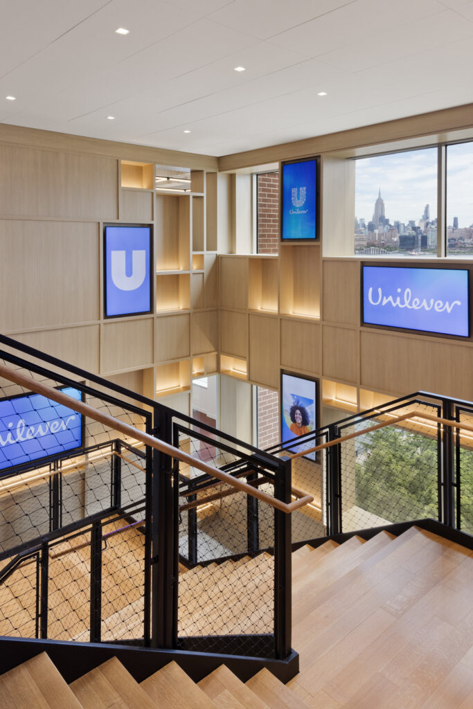 Unilever’s new US headquarters in Hoboken brings together people, brands, and partners in a space shaped for creativity and connection. Designed as a destination for collaboration and client engagement, the 111,000 SF workplace combines architectural clarity with an adaptable technology ecosystem that supports hybrid work, live demonstrations, virtual retail environments, and high impact storytelling. TAD worked alongside the architect from the earliest strategy stages to develop a cohesive, scalable, and intuitive AV platform that transforms the headquarters into a flexible environment for community building and innovation.